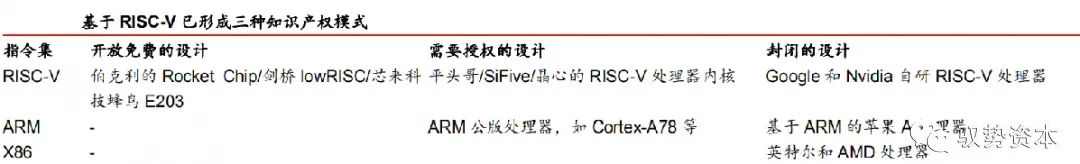 因此,我们对处理器发展史、ARM公司、ARM与中国的合作以及处理器架构自主可控发展等方面进行研究分析,我们认为中国芯片公司和ARM在移动互联时代合作中实现双赢,国产智能手机、多媒体领域SoC达到世界领先,高端32位MCU实现了突破。未来智慧物联时代带来极为丰富的应用场景和智能设备需求,基于ARM架构的国产MCU、SoC应用有广阔的发展空间。同时,我们认为英伟达收购ARM或将重塑全球芯片产业格局,在中美贸易摩擦背景下,ARM架构因其技术和市场地位有成为管制技术的潜在可能性。我们认为这种不确定性或将刺激中国自主化进程提速。RISC-V架构凭借开源和开放等优点,有望成为中国AIoT领域自主可控处理器架构的最佳选择。从数千晶体管到百亿晶体管,CPU在过去近五十年飞速发展中央处理器单元(CPU,Central Processor Unit)是计算机系统的核心。CPU的功能主要为处理指令、执行操作、控制时间、处理数据。中央处理器主要包括逻辑运算器、控制器和寄存器等部件。同时,CPU还包括高速缓冲存储器(Cache)及实现它们之间联系的数据、控制的总线。其中,逻辑运算器是多功能的运算单元,主要进行相关的逻辑运算,如执行移位操作和逻辑操作。除此之外,逻辑运算器还可以执行定点或浮点算术运算操作,以及地址运算和转换等命令。控制器则是主要用来对指令进行分析并且能够发出相应的控制信号。寄存器则是用来暂存指令、数据和地址信息。1971年11月15日,美国英特尔公司(INTC US,无评级)推出世界第一款商用计算机微处理器Intel 4004,被认为是CPU发展史的开端。作为4位处理器,Intel 4004由10um制程工艺在2英寸晶圆上打造,集成了2300个晶体管,主频为740kHz。而到了49年后的2020年,第十一代酷睿处理器芯片基于英特尔10nm工艺打造,将集成超过百亿个晶体管,最高主频可高达4.8Ghz。这颗CPU芯片不再是单一的CPU,而是集成了全新架构的Willow Cove内核、Iris X图形处理器、内存控制器、图像处理器、媒体解码器、电源管理、神经元加速器和各类高速接口控制器等各种组件。其中Willow Cove内核正是这颗CPU芯片集成的传统意义上的CPU。现代CPU成为处理器(processor)芯片的核心组件之一,而不仅仅是唯一组件。在过去50多年间,芯片制程工艺在摩尔定律的指引下从数十微米演进至5纳米,芯片的集成度不断提升。现代的应用处理器芯片(AP,application processor)、微处理器(MPU,Microprocessor Unit)、微控制器(MCU、Microcontroller Unit)、片上系统(SoC,System on Chip)等数字逻辑运算芯片在CPU外围集成了其他功能多样的组件。这些超大规模集成电路的CPU模块被称为处理器内核(Core)。2020年10月14日发布的苹果5nm移动终端处理器芯片A14 Bionic集成了118亿个晶体管,2020年10月22日,华为发布的麒麟9000 5G SoC集成了超过150亿个晶体管。多核技术的出现,在芯片基板上集成多个CPU内核,进一步提升了现代处理器芯片的性能。多个内核集成为一个CPU集合(cluster)共享一级高速缓存。2012年,ARM又引入大小核技术(big.LITTLE technology),在SoC的CPU集合里同时集成了高性能的大核(Cortex-A7x)和低功耗小核(Cortex-A5x),在不同应用场景下切换,从而达到性能和待机时长兼顾。大小核的CPU集合在智能手机芯片中最为常见。计算机指令(Instruction)是计算机硬件直接能识别的命令。指令是由一串二进制数码组成。一条指令通常由两个部分组成:操作码和地址码。操作码指明该指令要完成的操作的类型或性质,如取数、做加法或输出数据等;地址码指明操作对象的内容或所在的存储单元地址。计算机程序在硬件上执行是由成千上万条指令组成的。一段程序通过编译翻译成汇编语言,而后通过汇编器翻译成一条一条机器码。这些机器码是由0和1组成的机器语言表示,也就是计算机指令。指令集架构(Instruction Set Architecture)是指一种类型CPU中用来计算和控制计算机系统的一套指令的集合。指令集架构主要规定了指令格式、寻址访存(寻址范围、寻址模式、寻址粒度、访存方式、地址对齐等)、数据类型、寄存器。指令集通常包括三大类主要指令类型:运算指令、分支指令和访存指令。此外,还包括架构相关指令、复杂操作指令和其他特殊用途指令。因此,一种CPU执行的指令集架构不仅决定了CPU所要求的能力,而且也决定了指令的格式和CPU的结构。X86架构和ARMv8架构就是指令集架构的范畴。指令集架构以其复杂性可被分类为复杂指令集架构(CISC,Complex Instruction Set Computer)和精简指令集架构(RISC,Reduced Instruction Set Computer)两大类。CISC和RISC指令集架构是计算机指令系统的优化发展中先后出现。在计算机发展初期,计算机的优化方向是通过设置一些功能复杂的指令,把一些原来由软件实现的、常用的功能改用硬件的指令系统实现,以此来提高计算机的执行速度,这种计算机系统就被称为复杂指令系统计算机。20世纪80年代,尽量简化计算机指令功能的基本思想被提出,功能简单、能在一个节拍内执行完成的指令被保留,而较复杂的功能用一段子程序来实现,这种计算机系统就被称为精简指令系统计算机。X86架构是目前唯一的主流复杂指令集,垄断个人计算机和服务器处理器市场。X86架构是英特尔公司在1978年发布。在过去四十多年,x86家族不断壮大,从桌面转战笔记本、服务器、超级计算机。目前,X86架构授权被英特尔、超微半导体(AMD US,无评级)和台湾威盛三家把持。其中