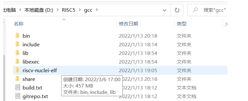 并新建几个文件夹,gcc存放图中1的解压,openocd存放2的解压,build-tools存放3的解压,hbirdSdk来自github,可以前往https://github.com/riscv-mcu/hbird-sdk 下载压缩包,并解压。