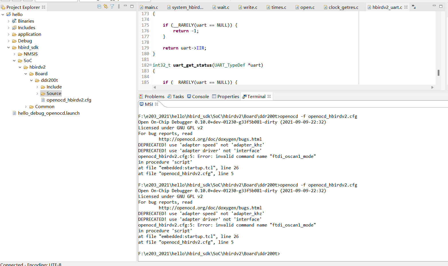 直接运行“openocd -f 配置文件.cfg”,这个配置文件可以用蜂鸟的配置文件,蜂鸟的配置文件在nuclei studio建好的工程里hbird sdk下找,cfg结尾的配置文件。当然也可以了解下如何使用hbird sdk,蜂鸟的文档里面有,hbird sdk就是基于命令行的,直接用hbird sdk来试试看能不能通讯上。