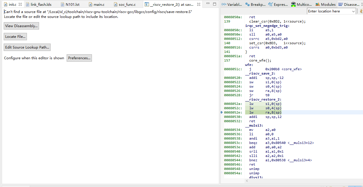 使用NucleiStudio调试时,无法从调用函数中跳转回main函数
