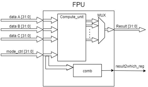 为了完成F拓展,我们计划在ALU内添加一个专用于计算单精度浮点数的FPU单元。