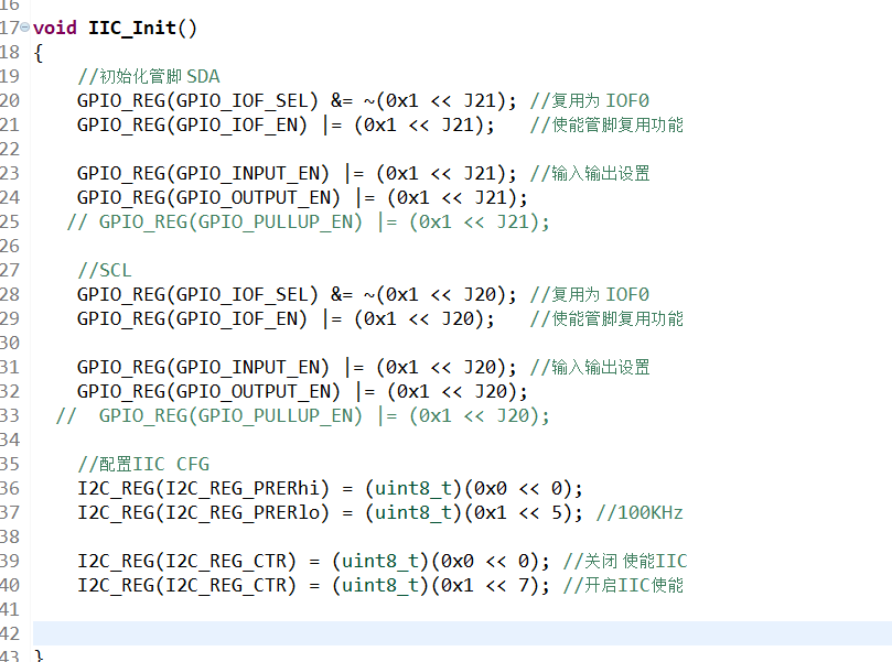 蜂鸟E203 IIC接口实际分配的gpio引脚位置与书上描述的不同,书上分配的是16和17引脚,大家用的时候注意!