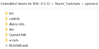 在新建的Nuclei_Toolchain文件夹里面放入解压好的工具链和openocd,直接解压后还需修改一下文件夹层级和文件夹名。文件名分别是gcc和openocd,并且要求下一级文件夹是bin文件所在层级,可参考以下截图:
