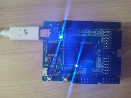 点击运行,这时候按键就会看到led在红绿蓝白之间切换。如果有串口调试助手的话也可以在串口调试助手看到输出,Embedded Studio也自带串口调试助手。