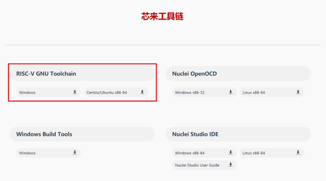 下一步准备工具链,从芯来科技官网的下载页面下载,其链接如下: