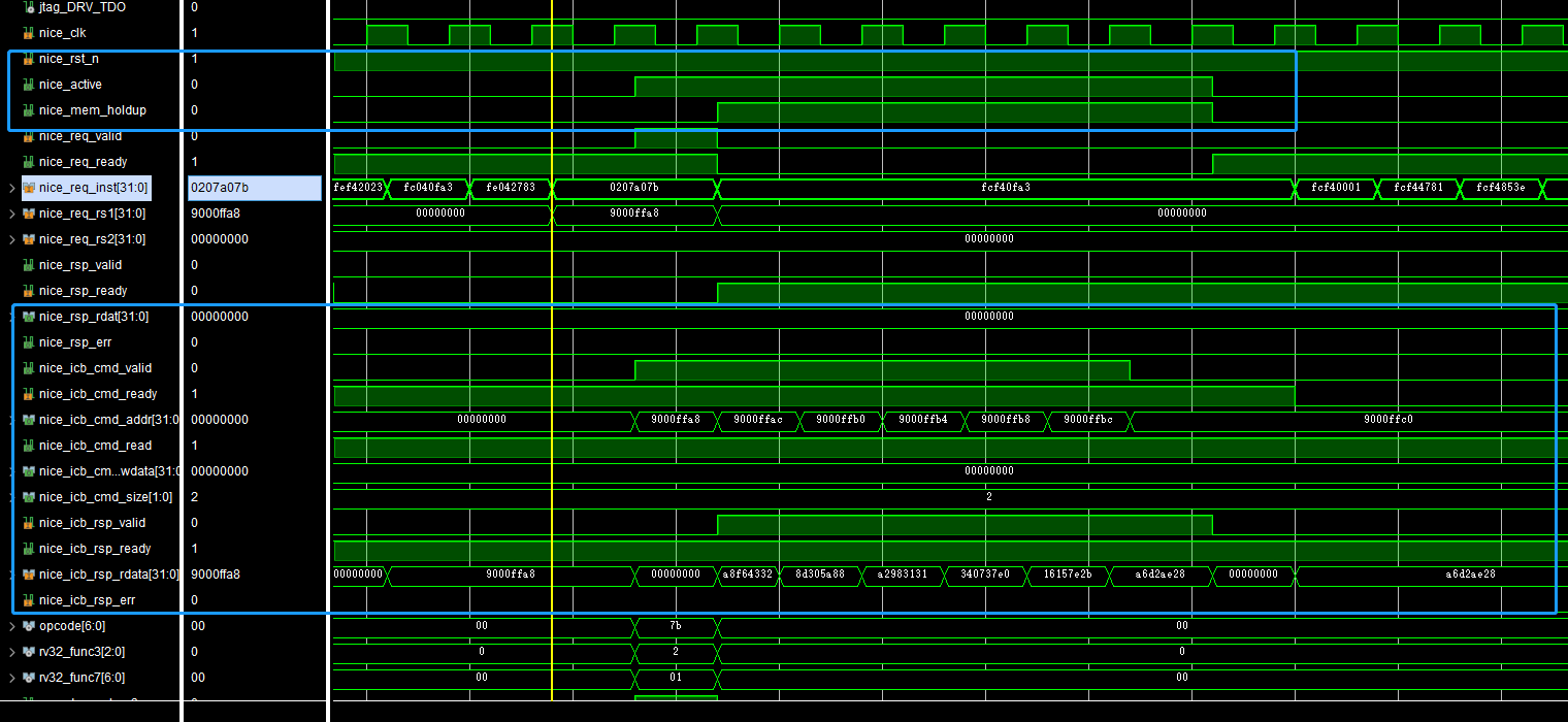 看你发的这个波形没看到第二条NICE指令额,所以你看下汇编代码里面第二条指令有没有