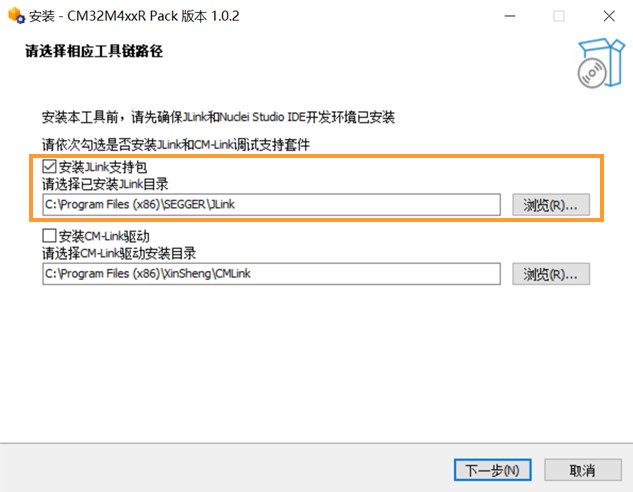 此外,还需要安装J-Link对于CM32M433R-START开发板的支持包,用户可根据具体所用系统选择Windows版本或者Linux版本。